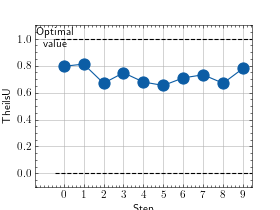 >>> # Example plotting multiple values >>> import torch >>> from torchmetrics.nominal import TheilsU >>> metric = TheilsU(num_classes=10) >>> values = [ ] >>> for _ in range(10): ... values.append(metric(torch.randint(10, (10,)), torch.randint(10, (10,)))) >>> fig_, ax_ = metric.plot(values)